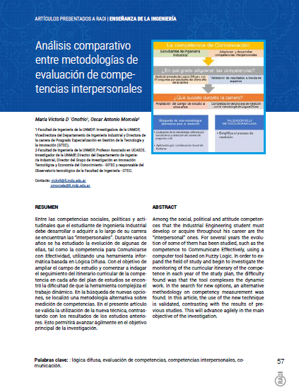 Entre las competencias sociales, políticas y actitudinales que el estudiante de Ingeniería Industrial debe desarrollar o adquirir a lo largo de su carrera se encuentran las “interpersonales”. Durante varios años se ha estudiado la evolución de algunas de ellas, tal como la competencia para Comunicarse con Efectividad, utilizando una herramienta informática basada en Lógica Difusa. Con el objetivo de ampliar el campo de estudio y comenzar a indagar el seguimiento del itinerario curricular de la competencia en cada año del plan de estudios se encontró la dificultad de que la herramienta complejiza el trabajo dinámico. En la búsqueda de nuevas opciones, se localizó una metodología alternativa sobre medición de competencias. En el presente artículo se valida la utilización de la nueva técnica, contrastando con los resultados de los estudios anteriores. Esto permitirá avanzar ágilmente en el objetivo principal de la investigación.