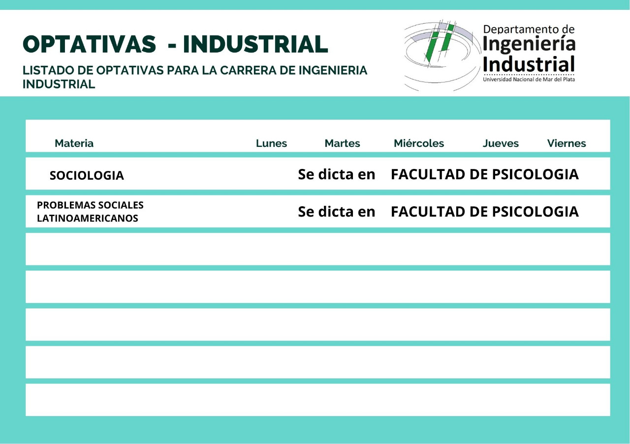 Oferta de optativas 2021 para la carrera de Ingeniería Industrial