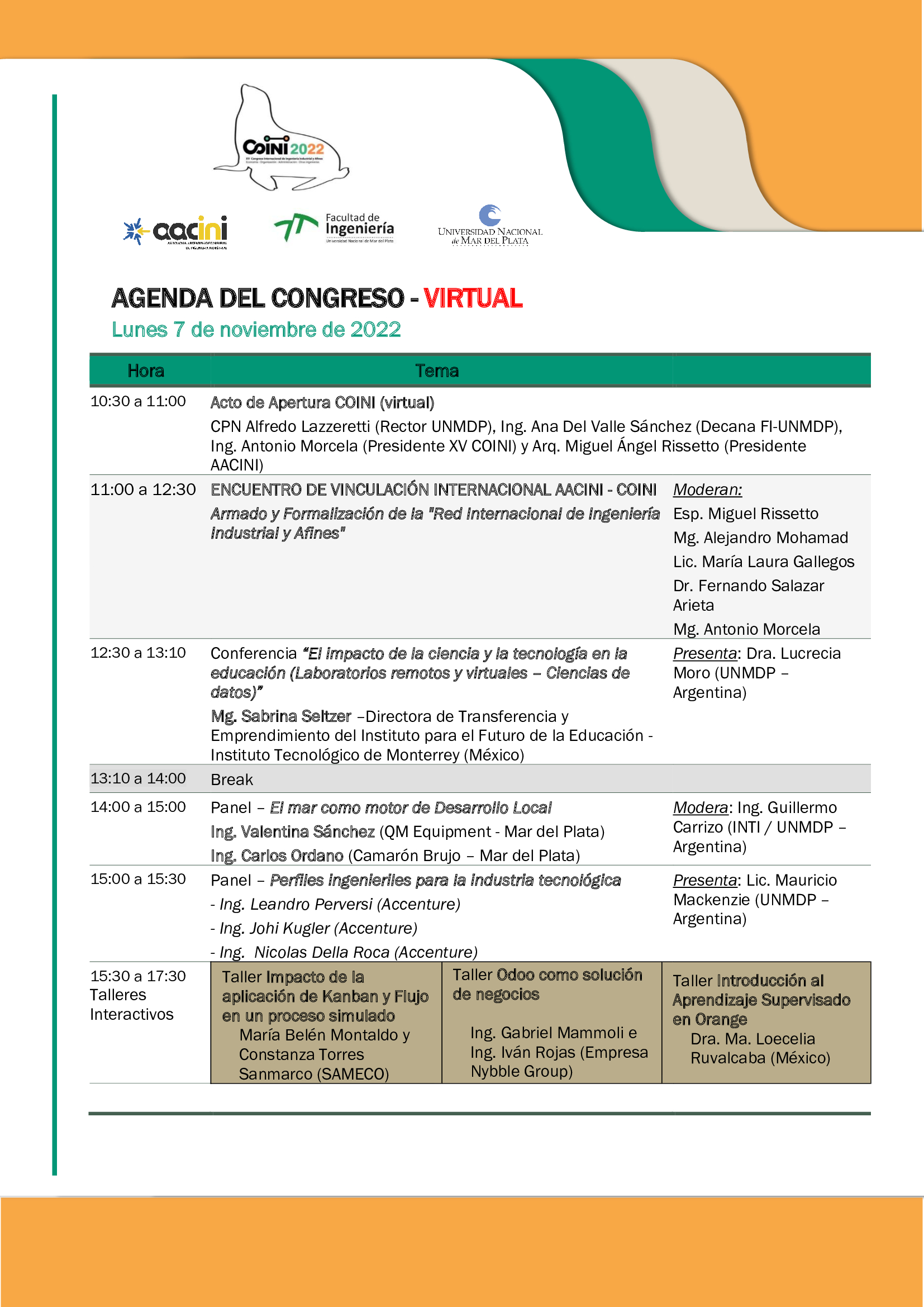 Agenda XV COINI 2022 - Virtual