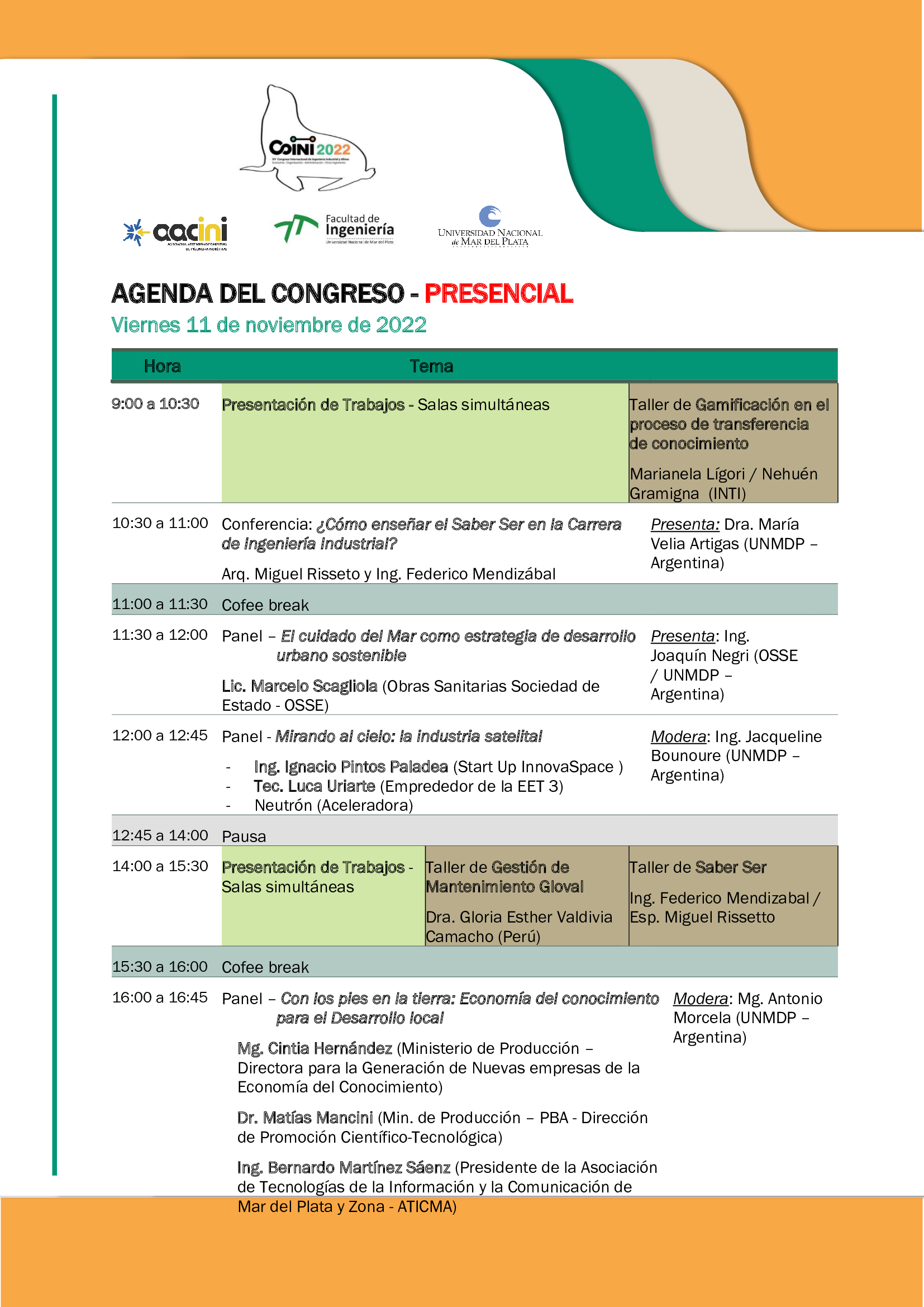 Noticias Noticias 11 Noviembre 2022 Agenda XV COINI2022 - Viernes 11/11 Agenda XV COINI 2022 - Virtual viernes 11 de noviembre de 2022 Web del Congreso: https://coiniarg.com/