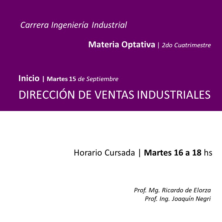 Optativas y cursos vocacionales Optativas 04 Septiembre 2020 Dirección de Ventas Industriales Optativa para Ingeniería Industrial