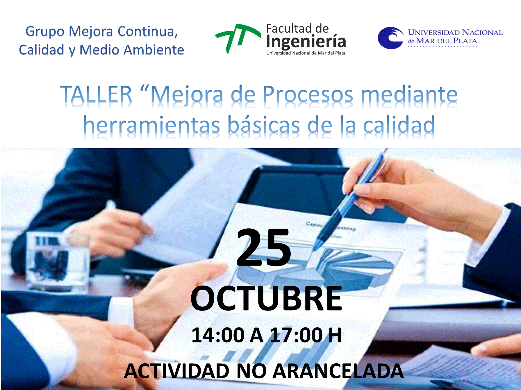 El grupo Mejora Continua, Calidad y Medio Ambiente perteneciente al Dpto. de Ingeniería Industrial de la Facultad de Ingeniería de la UNMDP tiene el agrado de invitarlos a: